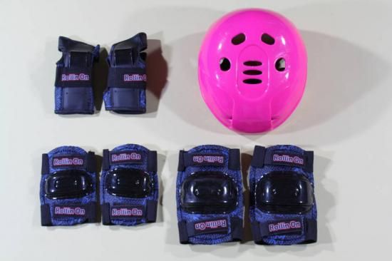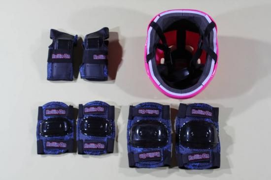 ◆プロテクターはマジックテープでサイズ調整ができるヘルメット、ニーパッド、エルボパッド、リストガードの4点セットです